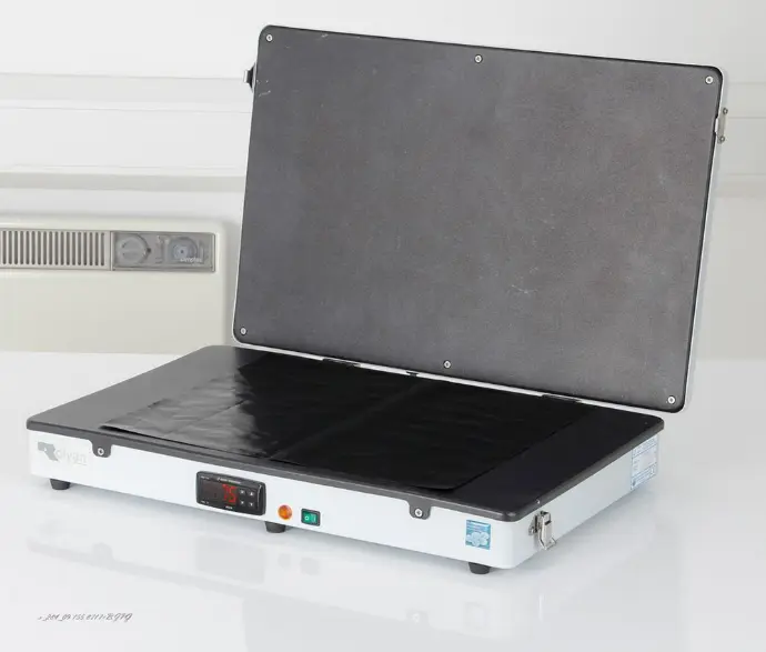 Die Rolyan Heizplatte ist eine alternative und gut zu transportierende Möglichkeit, Niedertemperatur-Materialien ohne den Einsatz von Wasser zu erhitzen. Das Schienenmaterial wird zwischen zwei Heizplatten gelegt und so von der Ober-und Unterseite