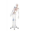 Das Therapieskelett hat eine bewegliche Wirbelsäule, Gelenkbänder und Muskelmarkierungen.