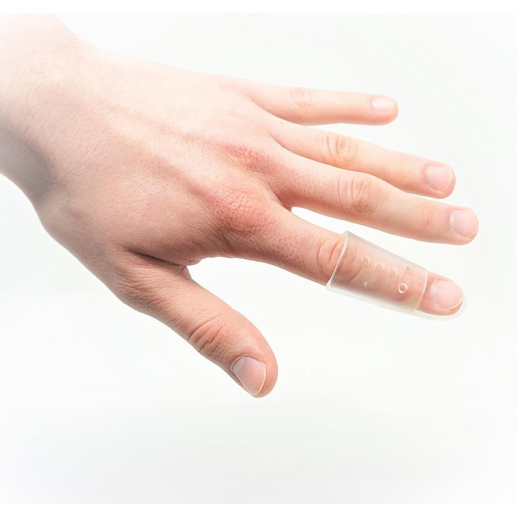 Fingerschiene mit natürlicher Temperaturregelung.Sie hält das Fingergelenk in Extensionsstellung, behindert aber die Beweglichkeit des PIP-Gelenkes nicht. Fixiert wird die Schiene mittels eines Pflasters oder eines Velcro Streifens. Zur Größenbestimmung messen Sie den Umfang des DIP Gelenks.