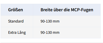 Messung als Handbreite über den MCP-Fugen. Die Schienen sind in der Version Linke oder Rechte verfügbar.